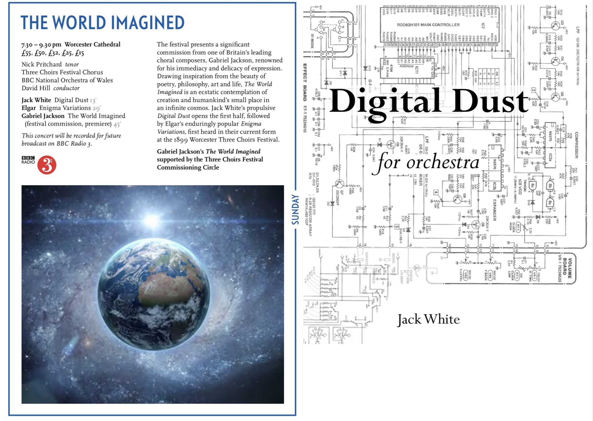 Today the Three Choirs Festival has published their programme. I am delighted to say that my orchestral piece ‘Digital Dust’ has been programmed on 25/07/2021. I will keep everything crossed that the festival goes ahead as intended, and will very much look forward to hearing NOW, under the baton of David Hill, perform this piece!