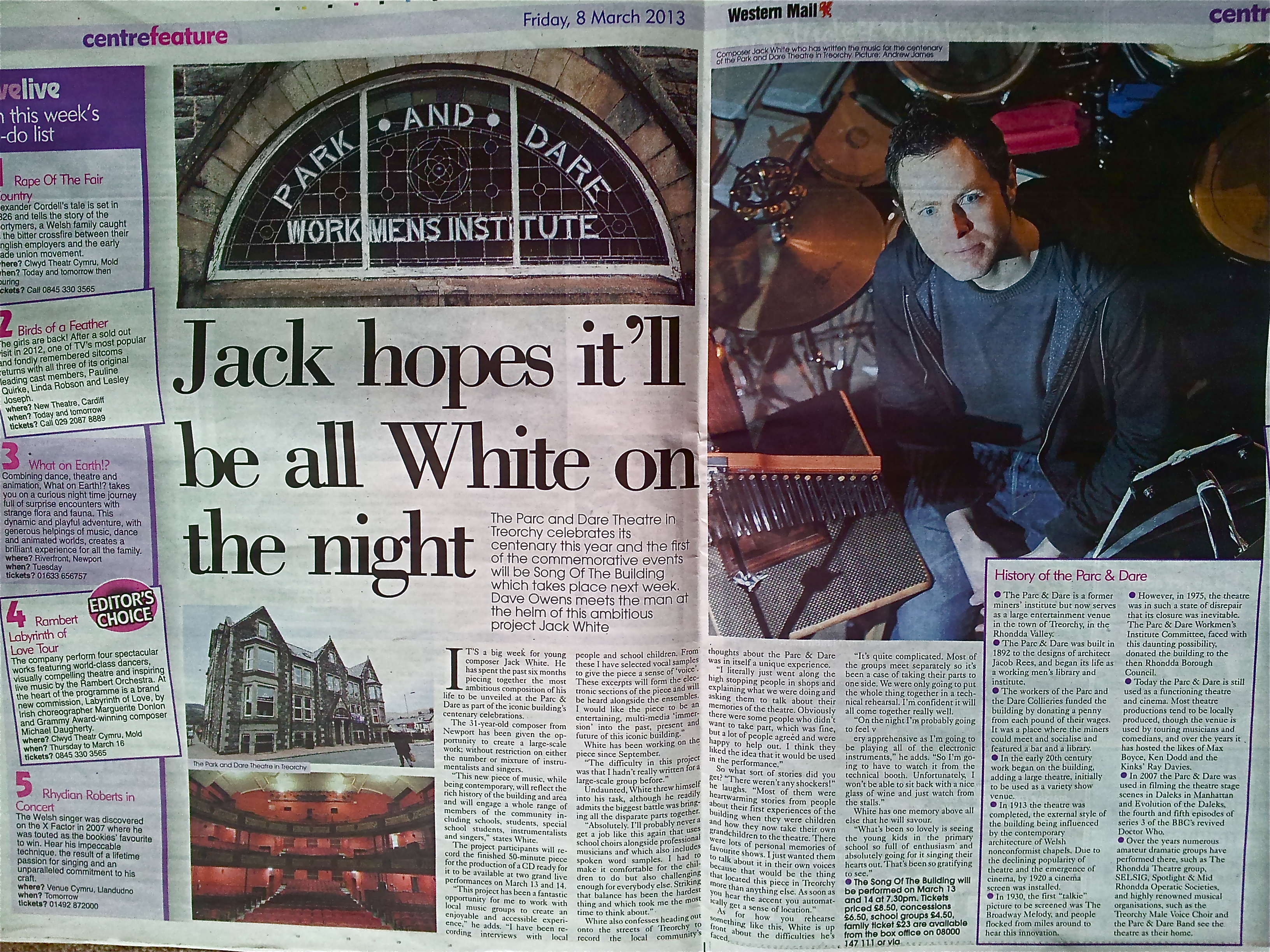 Today’s Western Mail Arts Sections includes a very nice article about the project and the history of the Park and Dare Theatre. It is the last rehearsal tonight before next week’s performances. Everyone is very excited about the project and it will be great to see some of our youngest performers taking steps on the stage for the very first time.